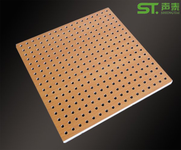 穿孔复合吸音板属于一种A级难燃的防火吸音装饰板。该产品主要用于对防火阻燃要求比较高的场所。穿孔复合吸音板分为复合槽板、复合孔板两款防火吸音材料,两种材料分别用于室内天花与墙面装饰吸音效果用。讲了那么多!那现在我们就进入主题,具体讲讲分析一下这款复合穿孔吸音板的特点与性能。