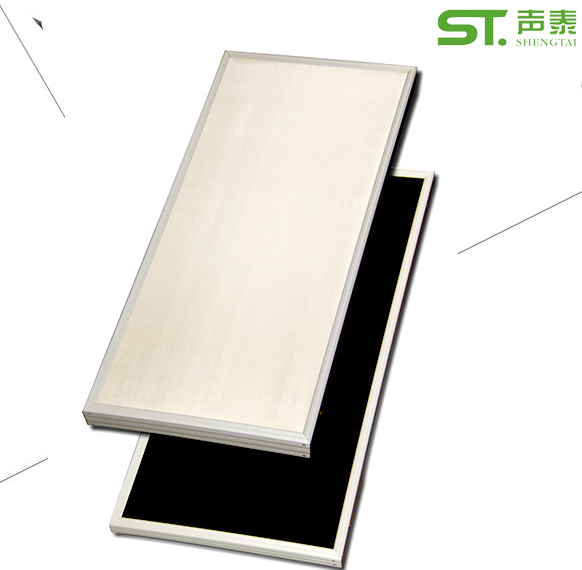 声泰声学平板空间吸声体是有优质玻璃纤维棉、定制铝质边框、吸音防尘玻纤布组成。具有环保、防火、吸声性能高、表面花样多等性能