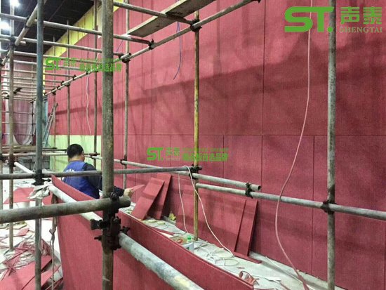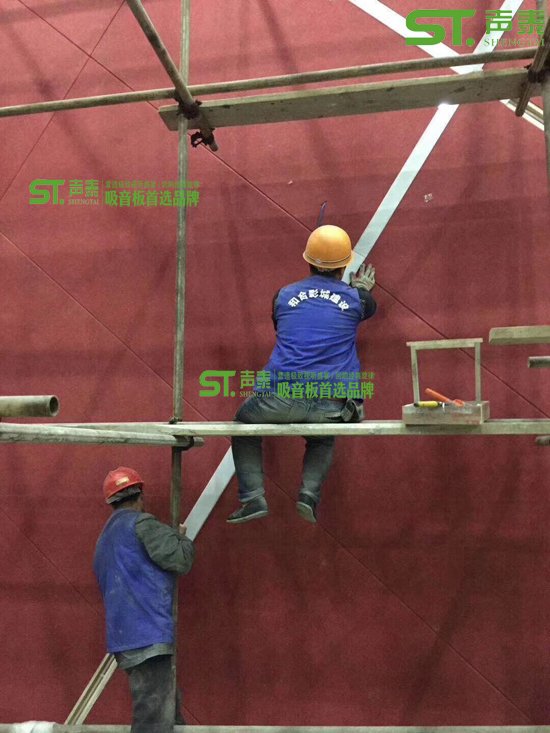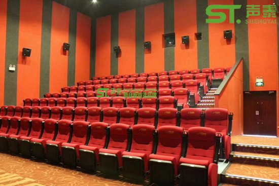 该影院项目位于广西北海,共使用B1级聚酯纤维吸音板2800平方米(2420*1220*9)