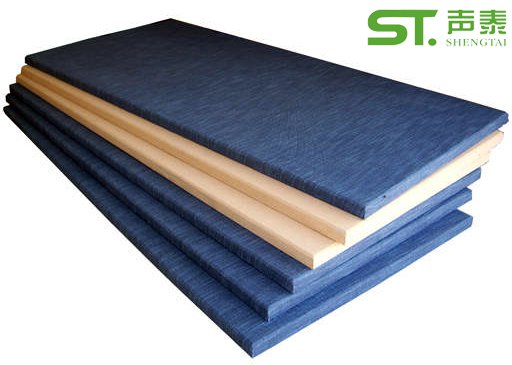 布艺吸音板芯材采用经微孔化处理的特制不燃高密度离心玻纤棉,周边经过阻燃树脂等材料固化处理或用木质边框固定。表面采用不同种类的,不同颜色的防火吸音布。